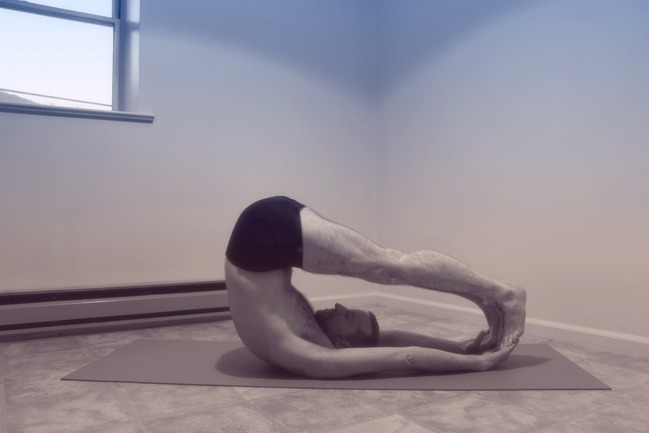 Медленно выдыхая, наклониться вперед и сделать захват больших пальцев ног пальцами рук. Не задерживая дыхание, оставаться в этом положении 10 секунд, подняв голову и прогибая спину. Затем сделать глубокий выдох, полностью согнуться и лечь на ноги. В этой позиции необходимо расслабить все мышцы тела и конечностей, сохранять свободное дыхание, удерживать локти на полу, а лицо в коленях. Оставаться в таком положении 3 минуты. Медленно вдохнуть, поднять сначала голову, а затем тело. Вернувшись в положение сидя совершить несколько глубоких дыхательных циклов.